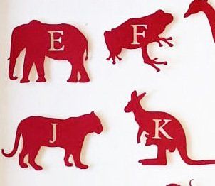 individually cut and layered initial with an accompanying alphabet animal