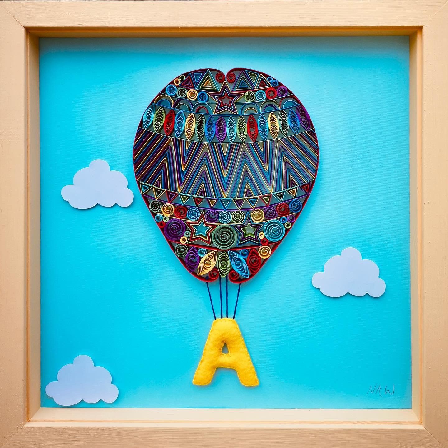 hand made individual paper quilled hot air balloon with stuffed felt initial or name